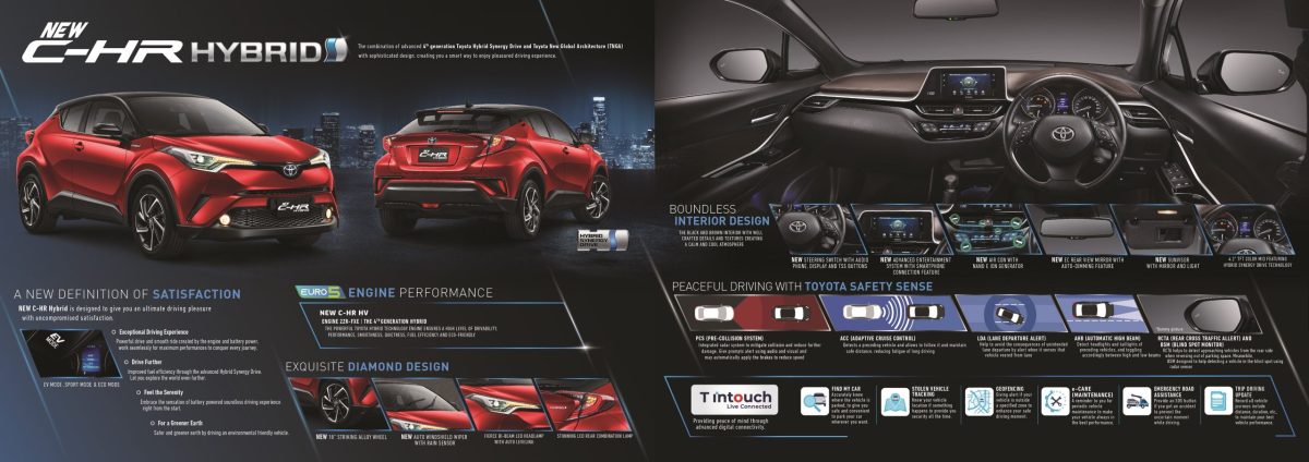 “Sejalan semangat Toyota menghadirkan total mobility solution, kami berkomitmen terus menghadirkan kendaraan elektrifikasi yang ramah lingkungan dengan teknologi safety yang advance. Hari ini kami memperkenalkan New C-HR Hybrid yang dilengkapi Toyota Safety Sense. Kami harap New C-HR Hybrid dapat memberikan pengalaman berkendara yang aman, nyaman, dan menyenangkan,” kata Marketing Director PT Toyota-Astra Motor, Anton Jimmi Suwandy.