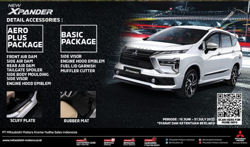 Konsumen pemilik mobil Mitsubishi New Xpander dapat memanfaatkan diskon hingga 20% untuk pembelian aksesoris Aero Plus Package, Basic Package, Rubber Mat, dan Scuff Plate.