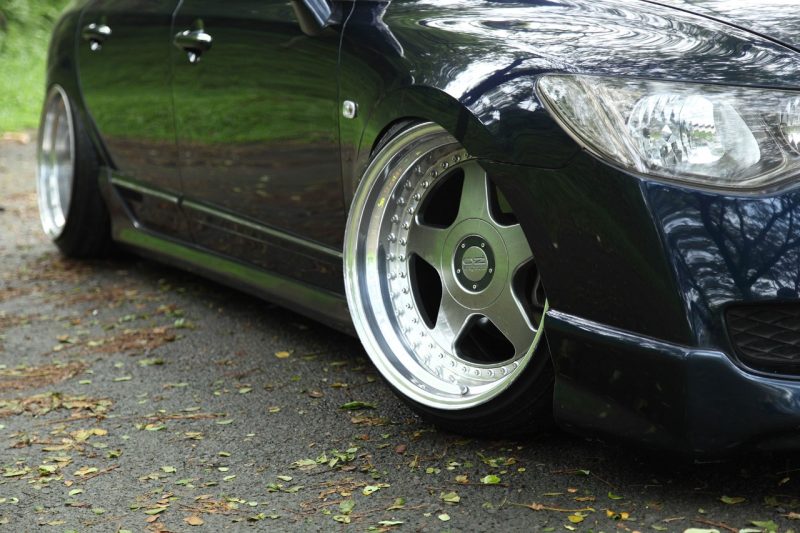Biar kece dan enggak cingkrang, bagian kaki-kaki pun dipersonalisasi sedemikian rupa oleh dirinya, mulai dari aplikasi pelek O.Z. Futura berdiameter 18 dengan lebar 10,5-11,5 depan-belakang. Rupanya pelek tersebut merupakan hasil step lip karena awalnya spek pelek ini hanya memiliki lebar 8,5-9,5. Bahkan, sebelumnya ia sempat menjejali lip pelek dengan lebar 11-12 loh, wow!
