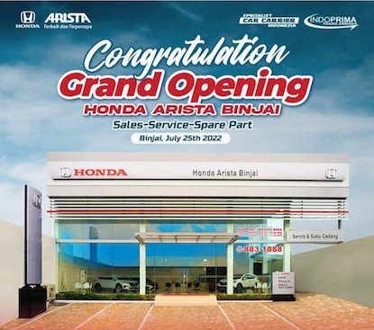 Honda Arista Binjai merupakan dealer resmi keempat yang diresmikan PT Honda Prospect Motor pada tahun 2022 ini setelah Honda KMG Manado di kota Tomohon, Honda Wiltop Jambi di kabupaten Bungo dan Honda Maju Pondok Gede Jakarta Timur.