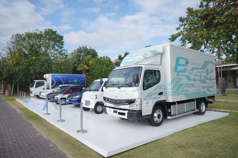 Kemudian 1 unit Nissan Leaf (BEV), 1 unit Mitsubishi Outlander (PHEV) dan 1 unit Mitsubishi Minicab-MiEV (BEV). Sedangkan kendaraan elektrifikasi di segmen komersial diwakili 1 unit FUSO eCanter dan 1 unit EV Elf Truck dari Isuzu.