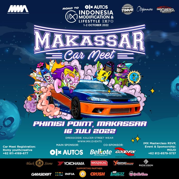 NMAA News – Seri kelima gelaran Road to OLX Autos IMX 2022 siap suguhkan kejutan di Kota Makasar, Sulawesi Selatan pada Sabtu 16 Juli mendatang. Geliat modifikasi dari kota Anging Mammiri seiring waktu menunjukan pertumbuhan pesat. Jika Sebelumnya para modifikator mengacu pada unsur estetika dan keunikan konsep.