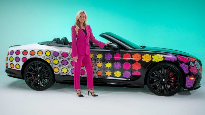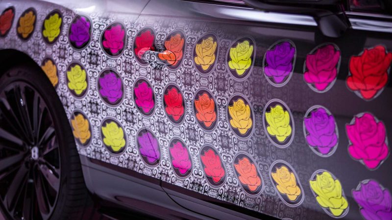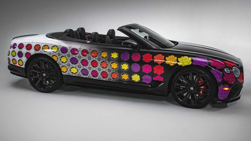 Tampilan unik Continental GT Speed Convertible ini dibuat eksklusif oleh divisi kustomisasi Mulliner Bentley. Warna dasarnya menggunakan gradasi mulai daru hitam di bagian depan hingga putih di belakang. Berikut gambar bunga berbagai warna, dan pola paisley di hampir seluruh bagian yang sedikit samar.