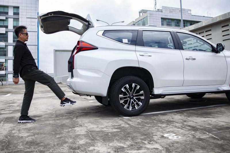 Fitur unggulan terbaru New Pajero Sport yang pertama adalah Power Tailgate with Kick Sensor. Memudahkan pengguna membuka dan menutup pintu bagasi dengan sensor kaki. Saat seseorang membawa banyak barang dan harus membuka pintu bagasi seorang diri, cukup ayunkan kaki di bawah bumper belakang, pintu bagasi otomatis terbuka.