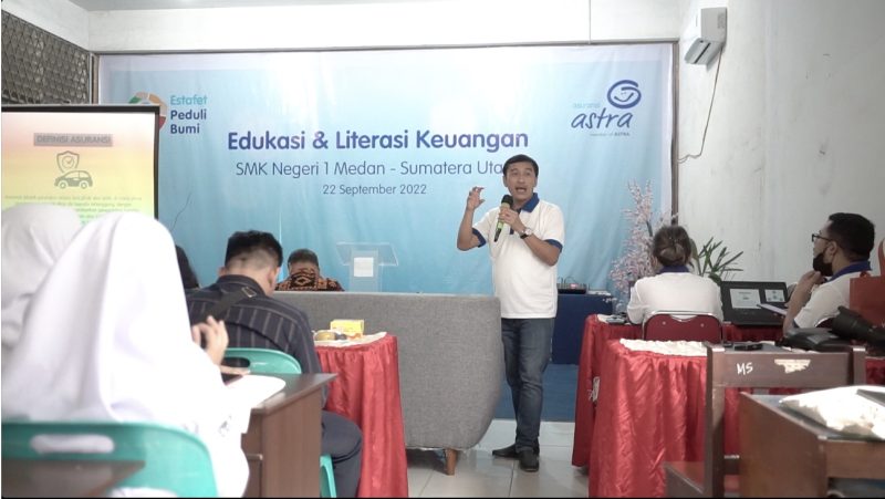 Tak lupa pada kesempatan ini, guna mendukung program peningkatan literasi dan edukasi keuangan yang dicanangkan OJK, Asuransi Astra dalam hal ini diwakili Compliance & Risk Management Director, Adi Sepiarso memberikan pelatihan manajemen keuangan pribadi kepada siswa dan guru di SMKN 1 Medan.