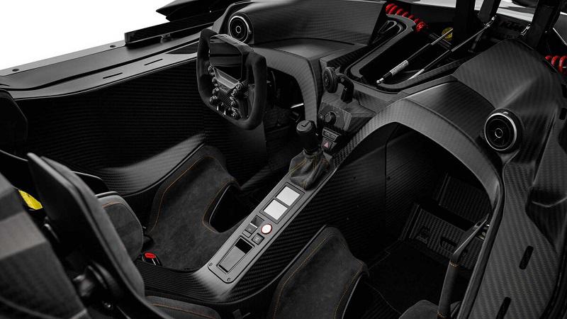 Bagian interior, tampilan dasbor sangat sporty dengan lingkar setir seperti model Formula 1 (F1). Adapun penggunaan jok model bucket dipadukan dengan seat belt enam titik.