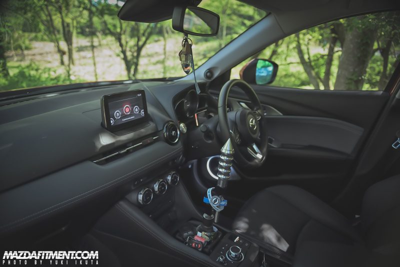 Memasuki ruang kabin, mulailah tampak ubahan masif di Mazda CX-3 ini. Terutama memberikan suguhan optimal di sektor in car entertainment dari produk aftermarket JL Audio.