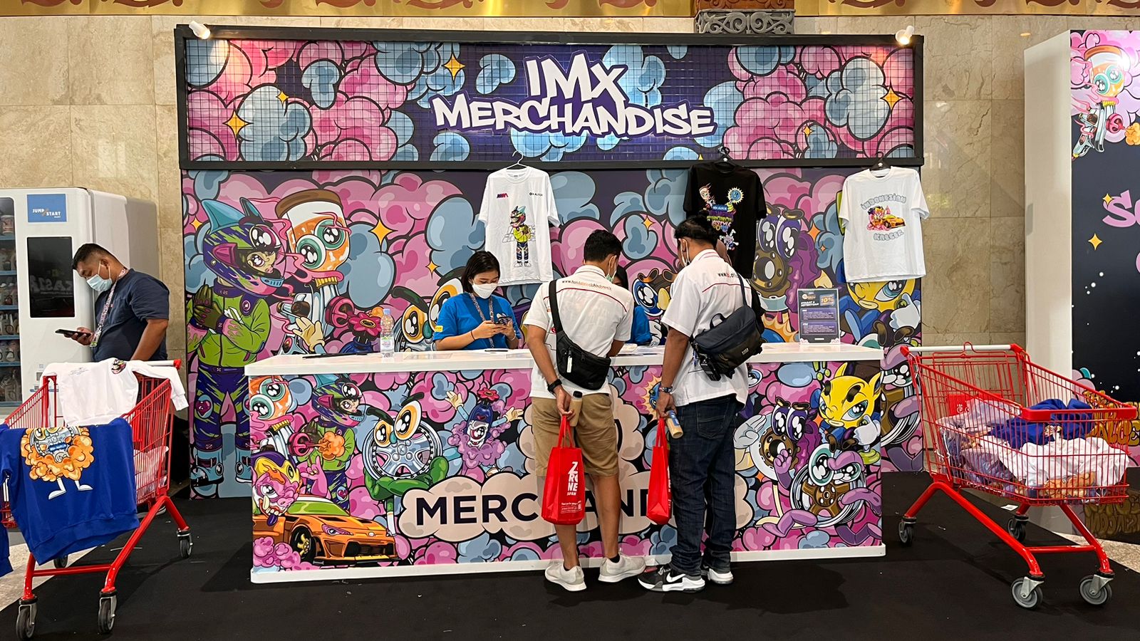 Indonesia Modification Expo (IMX) 2022 menawarkan beberapa merchandise yang bisa didapatkan. Antara lain, kaos dengan desain-desain menarik. Harga yang ditawarkan juga sangatlah spesial. Dan, pastinya tersedia dari ukuran S hingga XXXL serta hoodie untuk anak-anak.