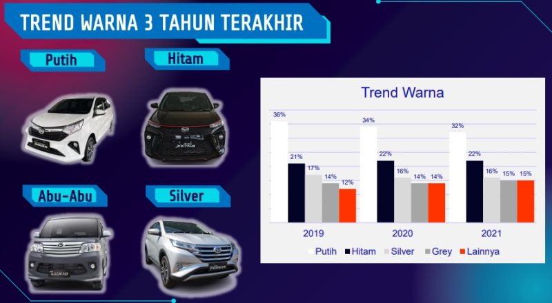 Secara pengertian dan fungsi, cat merupakan lapisan terluar bodi mobil yang berfungsi melindungi plat bodi mobil dari cuaca dan karat, sekaligus mempercantik tampilan eksterior mobil. Tren warna yang disukai 3 tahun terakhir ini; putih, hitam, silver, dan grey.