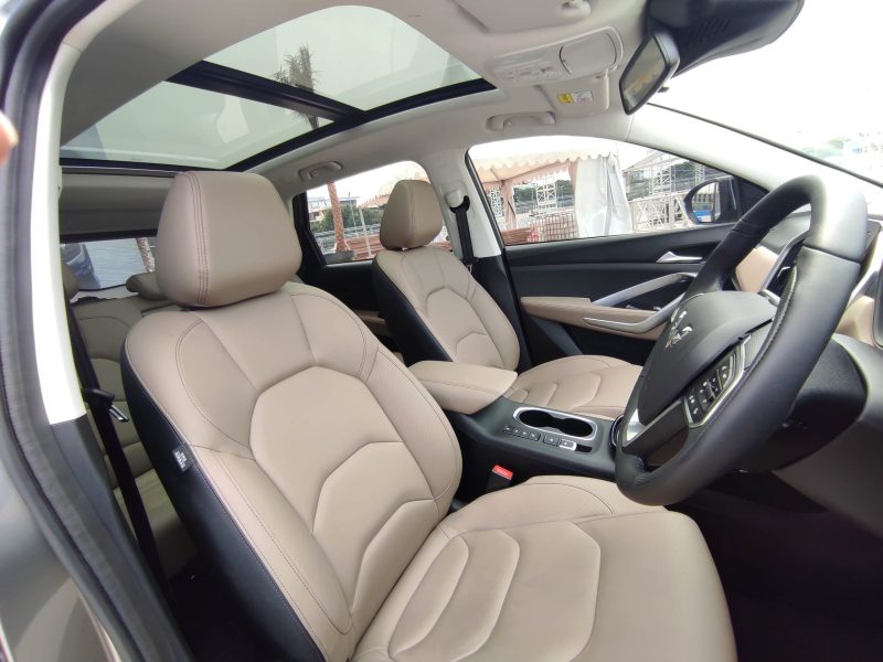Kami juga berkesempatan merasakan kenyamanan kabin Wuling Almaz Hybrid. Pasalnya, interior Almaz Hybrid hadir dengan sentuhan warna baru warm beige dan soft panel yang memperkuat kesan premiumnya. Selain itu, Almaz Hybrid memiliki desain tuas transmisi baru futuristik serta New Digital TFT Meter Cluster.