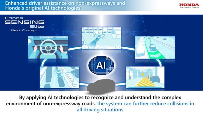 Honda Sensing Elite akan dikembangkan menjadi teknologi baru membantu pengemudi mencapai perjalanan aman dan juga tanpa gangguan dari rumah ke tujuan mereka dengan ketenangan pikiran di kondisi jalan mana pun, termasuk jalan bebas hambatan, memanfaatkan pengenalan dan pemahaman teknologi kecerdasan buatan (AI) dari Honda.