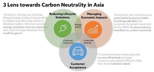 Dalam hal ini Toyota telah menghadirkan Hybrid Electric Vehicles (HEV), Plug-in Hybrid Vehicles (PHEV), Battery Electric Vehicles (BEV) dan Fuel Cell Electric Vehicles (FCEV) yang menawarkan beragam pilihan ramah lingkungan kepada pelanggan di seluruh pasar Asia.