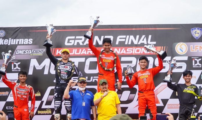 NMAA News – Crosser Astra Honda Racing Team (AHRT) M. Delvintor Alvarizi berhasil menjadi jawara pada Kejuaraan Nasional (Kejurnas) Motocross 2022 kelas MX2 dengan menyapu bersih podium teratas di setiap seri. Rekan satu tim Delvintor, Nuzul Ramzidan menempati posisi ketiga di ajang ini.