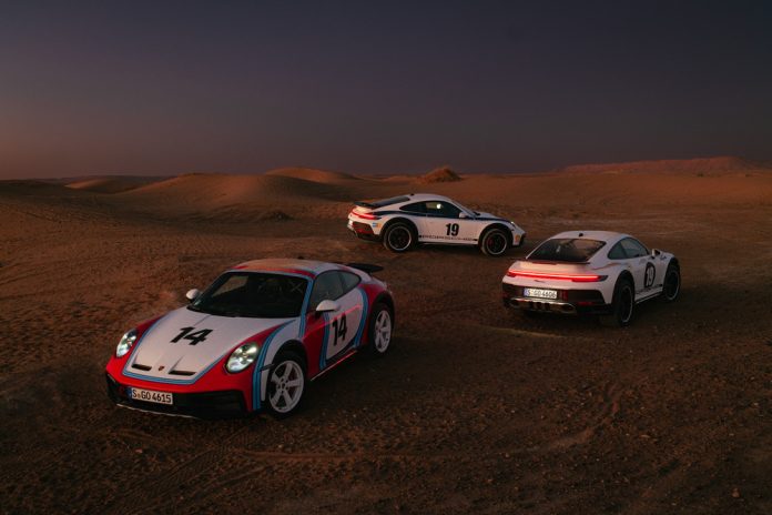 Baru-baru ini, Porsche mengenalkan sebanyak 3 unit 911 Dakar tampil ke publik membawa semangat 50 tahun silam. Ketiganya sudah mendapat opsi styling dari para legenda reli. Misalnya Porsche 911 Rallye 1971 yang punya corak hitam di bagian kap mesin, nomor 19, legacy ‘Porsche’ di kedua sisi pintu, sampai stiker sponsor.