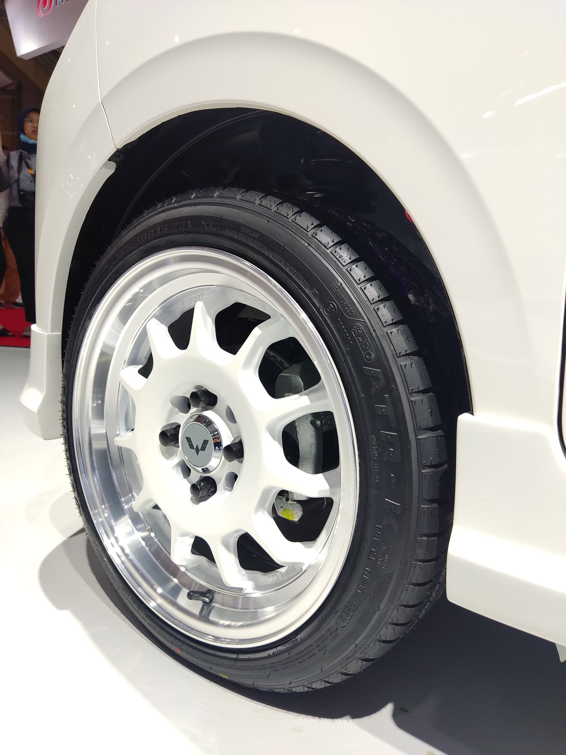 Skema warna bodi putih disandingkan dengan velg 15 inci multi palang putih yang memiliki lips lebar dengan finishing hi-polish. Lalu, velg tersebut dibalut ban 165/50 R15.