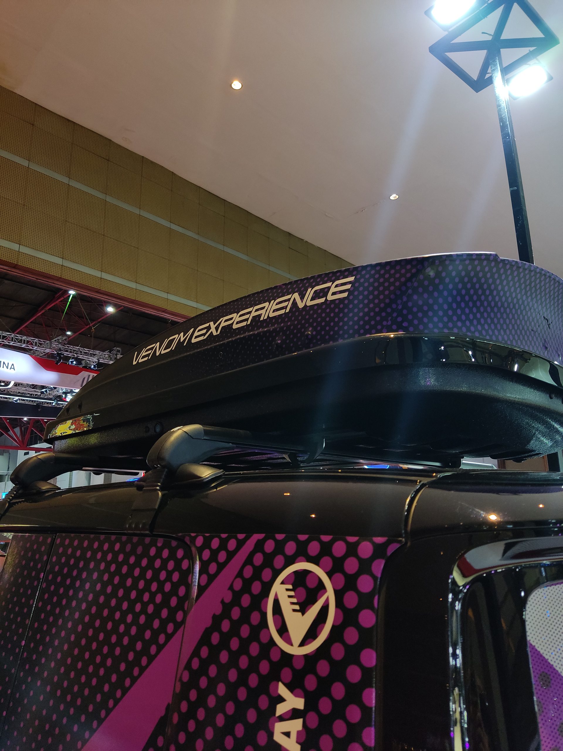 Di bagian atap, mobil display Venom Audio ini sudah menggendong roofbox untuk menyimpan barang bawaan penumpang.