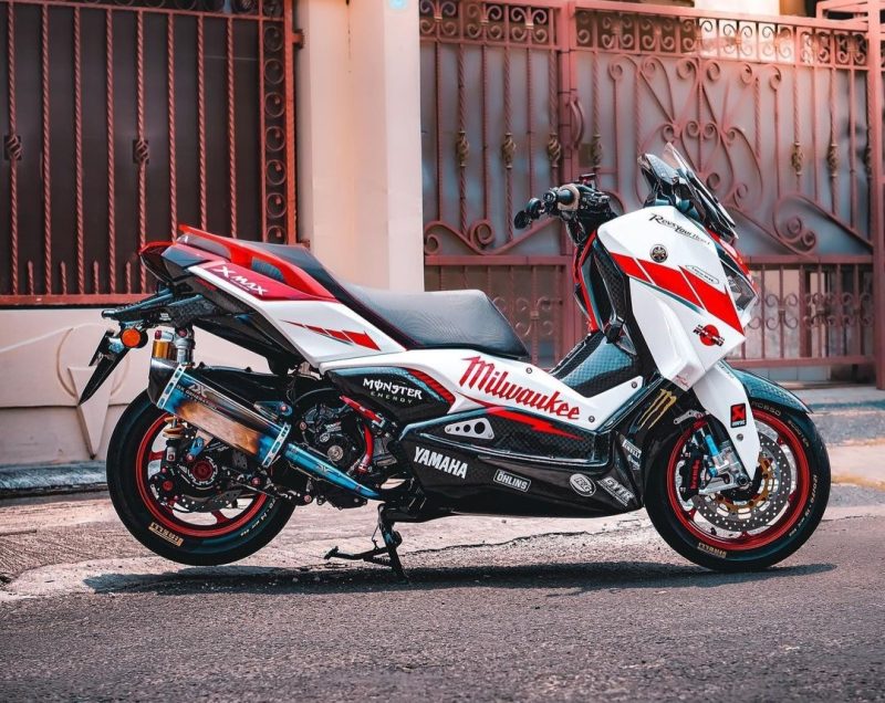 Mengusung tema livery Yamaha R1 WorldSBK Milwaukee edition tahun 2015, XMAX generasi terbaru milik Rifky tampil sangat sporty melalui balutan warna putih yang dipadukan grafis speed block dan logo bertuliskan Milwaukee berwarna merah. Aura maskulin pada motor juga semakin mencuat dengan sentuhan kevlar motif karbon yang disematkan pada hampir seluruh body cover.