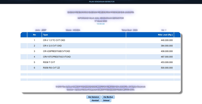 Sehingga, kuat dugaan tipe baru dalam penelusuran di laman web samsat-pkb.jakarta.go.id adalah Honda CR-V generasi keenam yang tinggal menunggu waktu peluncurannya di Indonesia.
