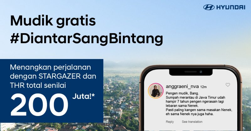 Lewat kampanye yang mengusung tagline #DiantarSangBintang , HMID memberi kesempatan bagi masyarakat luas untuk bisa menikmati perjalanan ke kampung halaman menggunakan Hyundai Stargazer, produk MPV kekinian dari Hyundai.