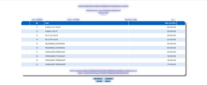 Soal harga, PT HMID telah mendaftarkan nama baru di laman Samsat PKB Jakarta untuk mengetahui Nilai Jual Kendaraan Bermotor (NJKB). Tim nmaa.co.id menelisik kolom pencari, menuliskan kategori mobil Hyundai, tahun 2023, dan jenis minibus.