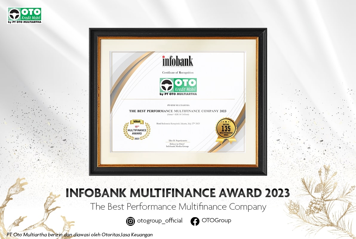 Pada momen ini, OTO Kredit Mobil meraih penghargaan The Best Performance Multifinance Company 2023 untuk kategori asset lebih dari 10 Triliun Rupiah. Pemberian penghargaan ini didasarkan pada Rating 135 Multifinance Versi Infobank tahun 2023.