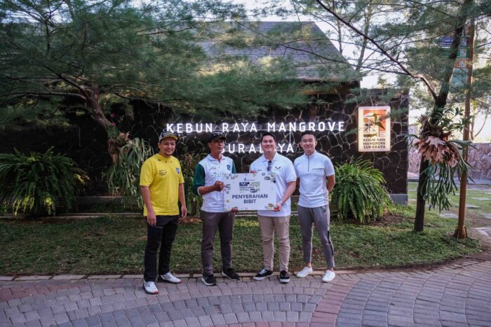 Setiba di Mangrove Wonorejo Ecotourism, prosesi penyerahan bibit bakau dilakukan oleh perwakilan Wuling serta WEVI. Kegiatan ini merupakan aksi nyata dalam menjaga lingkungan di area pesisir Surabaya. Sesi ini diakhiri dengan foto bersama.