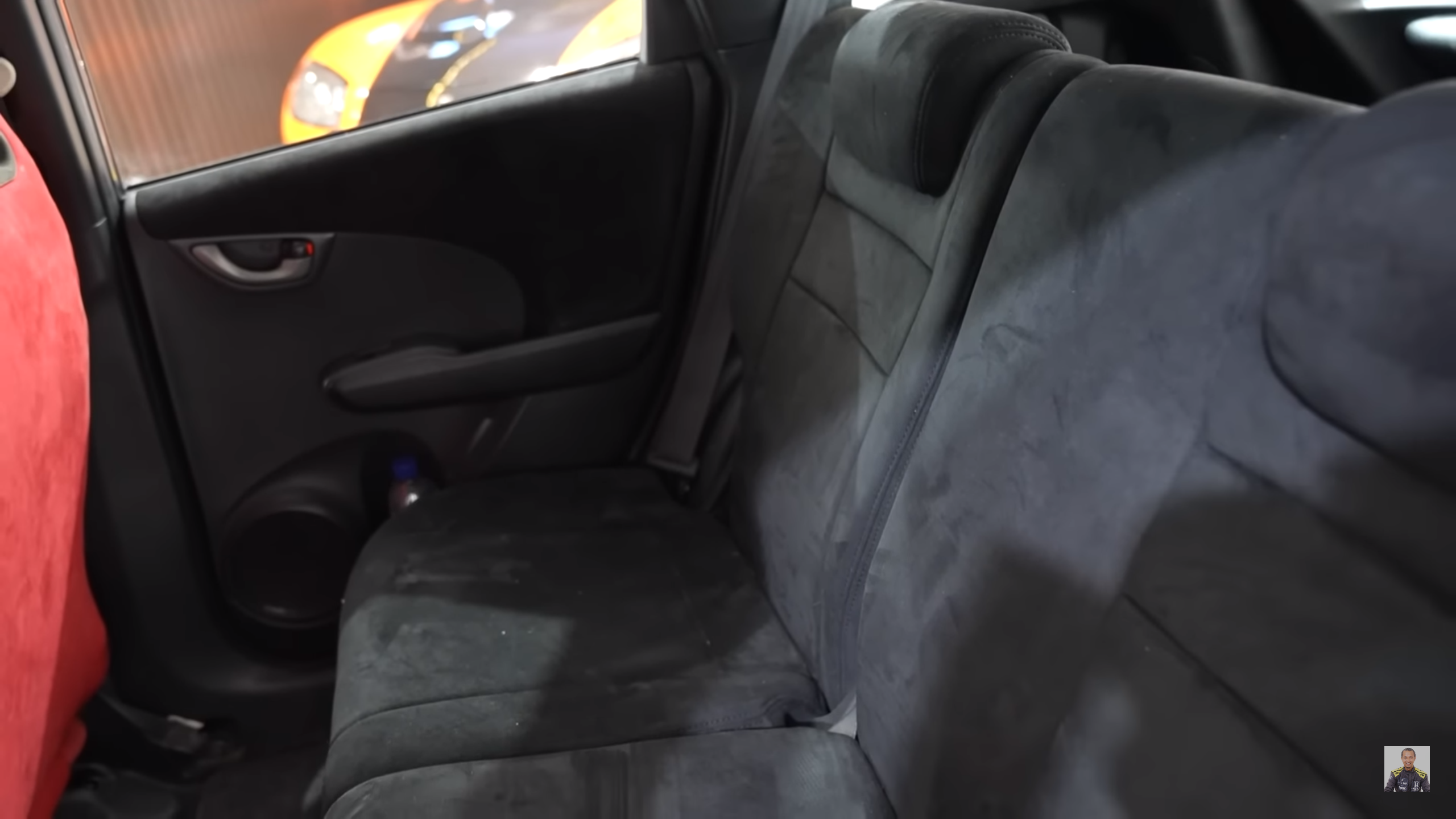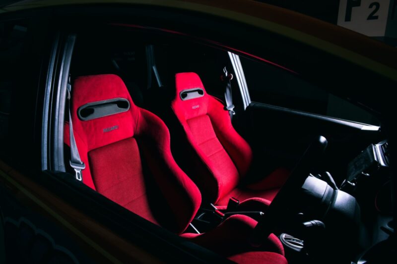 Begitu membuka pintu, dua buah jok Recaro SR3 copotan Honda Civic Type R (EK9) langsung menyapa. Jok semi bucket warna merah ini memberi nuansa Racing di baris pertama.