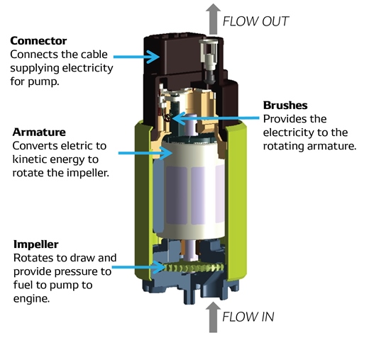 Menurut dokumen yang diterbitkan oleh NHTSA, impeler pompa bahan bakar merupakan komponen berada di fuel pump. Jika impeller mengalami kerusakan, maka fuel pump kit wajib diganti.