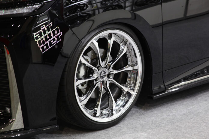 Untuk mengawali keran penjualan, Kranze Versum terpasang apik di empat sumbu roda Toyota Vellfire selama Osaka Auto Messe 2024 berlangsung.