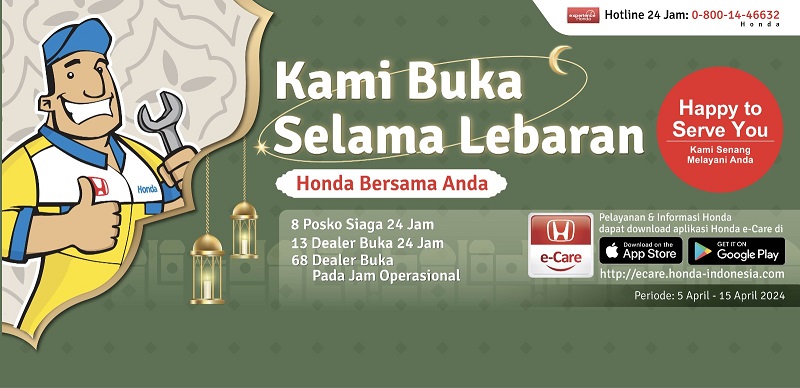 NMAA News – Guna memberi rasa aman konsumennya saat menyambut Lebaran, Honda hadirkan layanan posko dan dealer siaga melalui Honda Emergency Service (HES) selama 11 hari, periode 5 – 15 April 2024.
