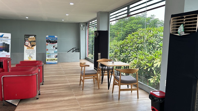 Sambil menunggu kendaraan diperbaiki teknisi profesional, konsumen dapat bersantai di ruang tunggu nyaman dan luas dilengkapi fasilitas ruang istirahat, televisi, koneksi wifi serta makanan ringan gratis.