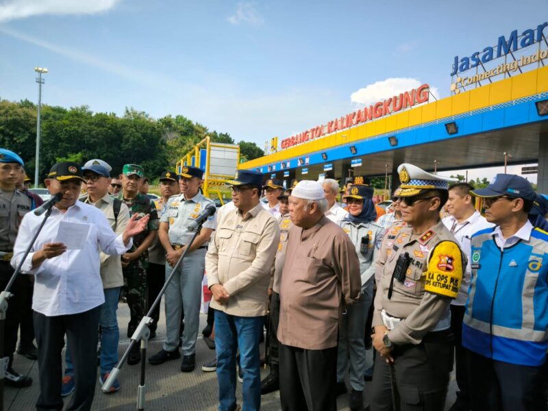 “Hari ini sesuai dengan rakor yang dilaksanakan di Km 70, kita sepakati bahwa hari ini diberlakukan one way satu jalur,” kata Menteri Koordinator bidang Pembangunan Manusia dan Kebudayaan (Menko PMK) Muhadjir Effendy saat jumpa pers di GT Kalikangkung, dikutip dari humas.polri.go.id Sabtu (3/4/2024).