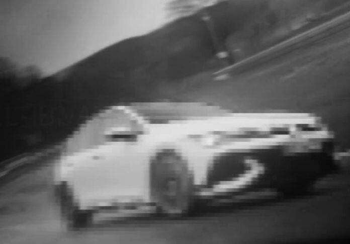 Efek video hitam putih menunjukkan sebuah GTI yang diduga berasal dari generasi ke-7 (MK7) menjajal Sirkuit Nurburgring di Jerman.