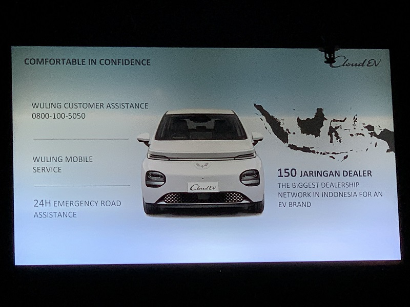 Selain aspek garansi dan biaya kepemilikan, Wuling Cloud EV dilengkapi program purna jual Wuling berupa Wuling Customer Assistance melalui nomor 0800-100-5050, Emergency Road Assistance (ERA), hingga Wuling Mobile Service (WMS).