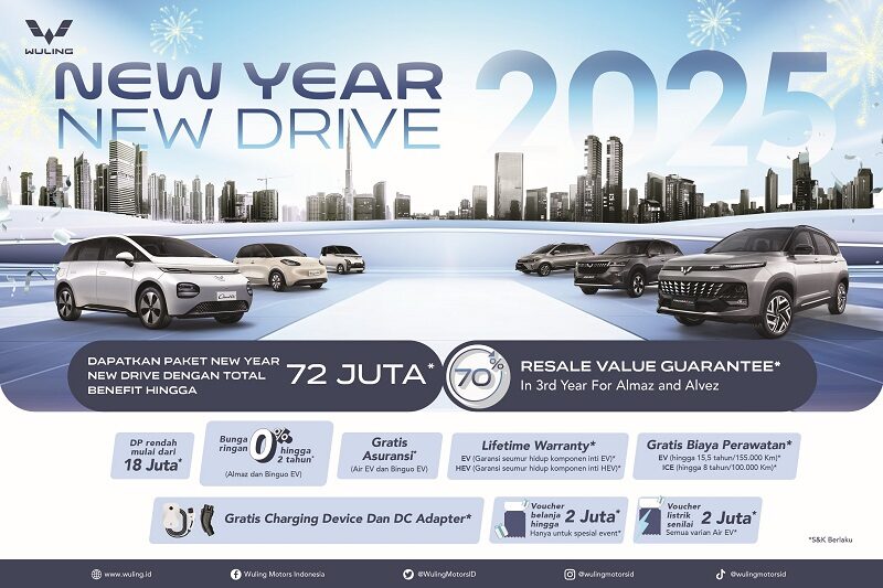 “Kami sambut 2025 dengan promo spesial khusus memenuhi kebutuhan konsumen di awal tahun. Program ‘New Year, New Drive’ bentuk komitmen kami berikan kemudahan ke konsumen yang ingin memiliki lini produk Wuling pilihannya. Promo ini berlangsung nasional dan berlaku untuk seluruh lini kendaraan mulai ICE, Hybrid dan EV,” ujar Edison, Sales Operation Manager Wuling Motors.