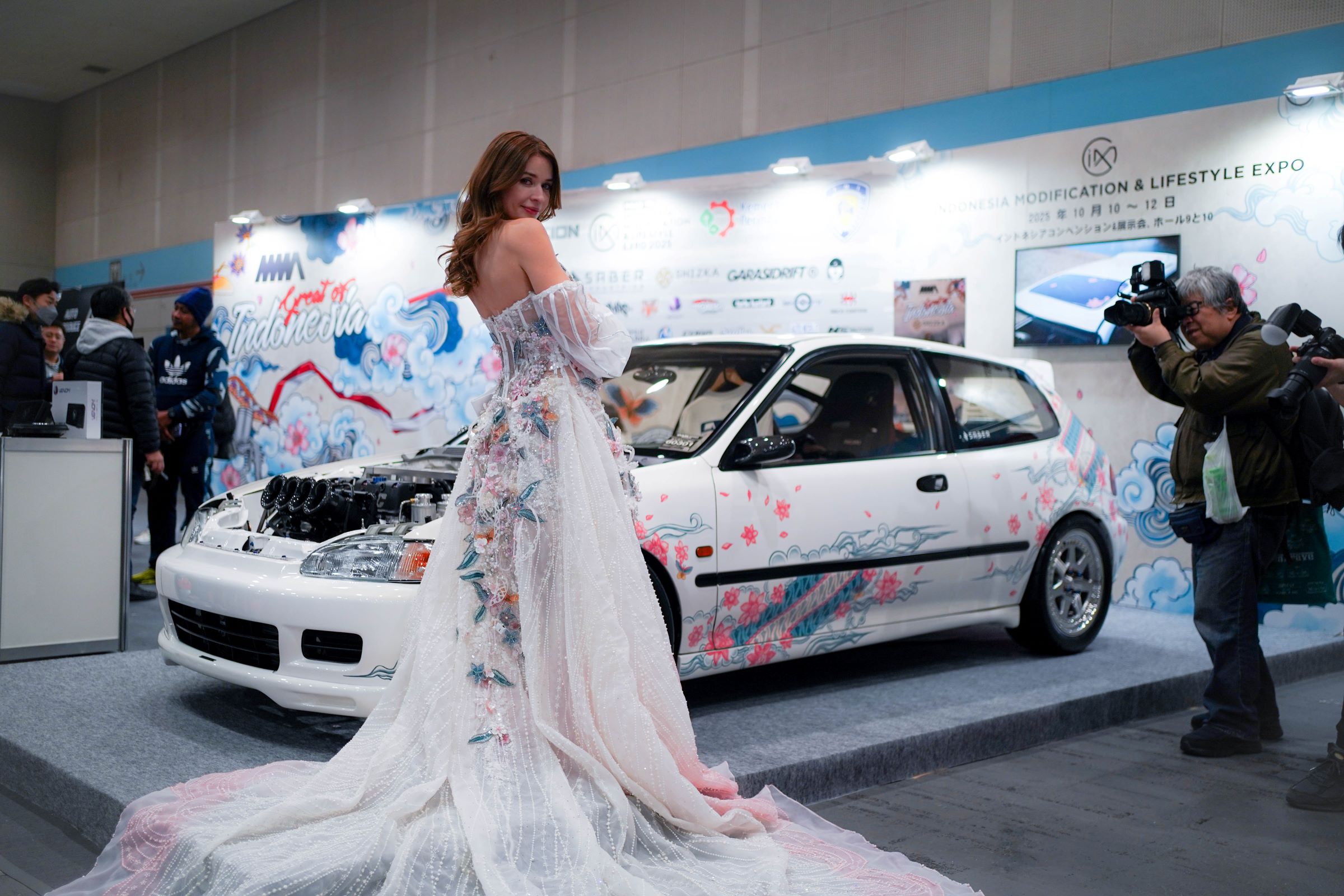 NMAA News – Industri fashion dan otomotif Indonesia kembali menunjukkan sinergi uniknya dalam ajang bergengsi Osaka Auto Messe 2025, di mana busana batik karya Shizka Prive turut dipamerkan dalam program NMAA Great of Indonesia. Karya ini dipadukan dengan mobil Honda Civic Estilo EG6 bertema Street Racing, yang mengusung sentuhan seni batik khas Indonesia dengan tema “Batik Hokokai”.