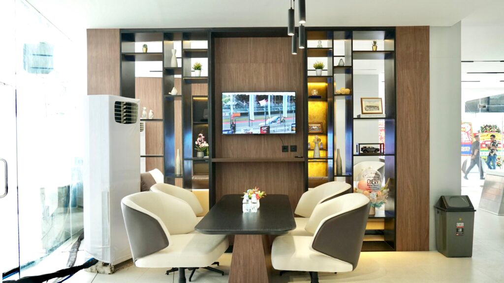 Area display Chery Arta Bekasi Barat modern dan nyaman menampilkan jajaran lengkap produk premium Chery, mulai ikon SUV listrik Chery OMODA E5 & J6, Chery TIGGO Cross sebagai SUV Crossover fenomenal, hingga flagship SUV Chery TIGGO 8 CSH yang akan diluncurkan resmi di Tanah Air.