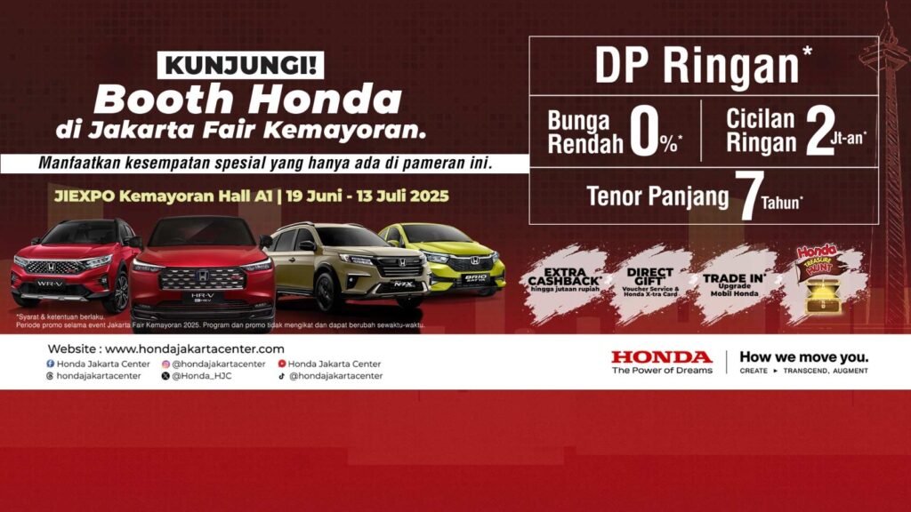 Selama Jakarta Fair Kemayoran 2025 berlangsung, Honda Jakarta Center tawarkan berbagai program penjualan menarik yang memberi kemudahan dan keuntungan lebih bagi konsumen. Di antaranya: