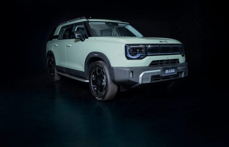 Dengan dimensi panjang 4.730 mm, lebar 1.910 mm, dan tinggi 1.790 mm, BJ30 menampilkan postur kokoh dengan garis bodi tegas yang menonjolkan kekuatan dan kepercayaan diri.