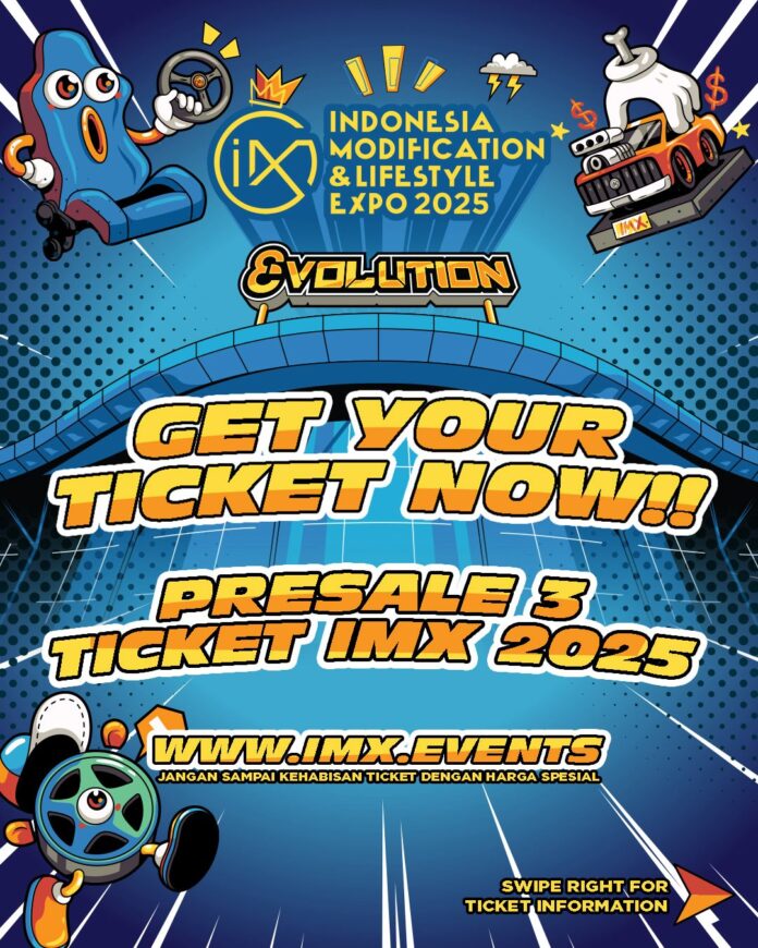 Jakarta, 25 Juli 2025 – Indonesia Modification and Lifestyle Expo (IMX) 2025 resmi merilis kembali penjualan tiketnya. Kali ini tiket Pre Sale 3 sebagai gelombang terakhir, penjualan tiket lebih awal untuk gelaran pada 10-12 Oktober 2025 di ICE BSD, Tangerang.