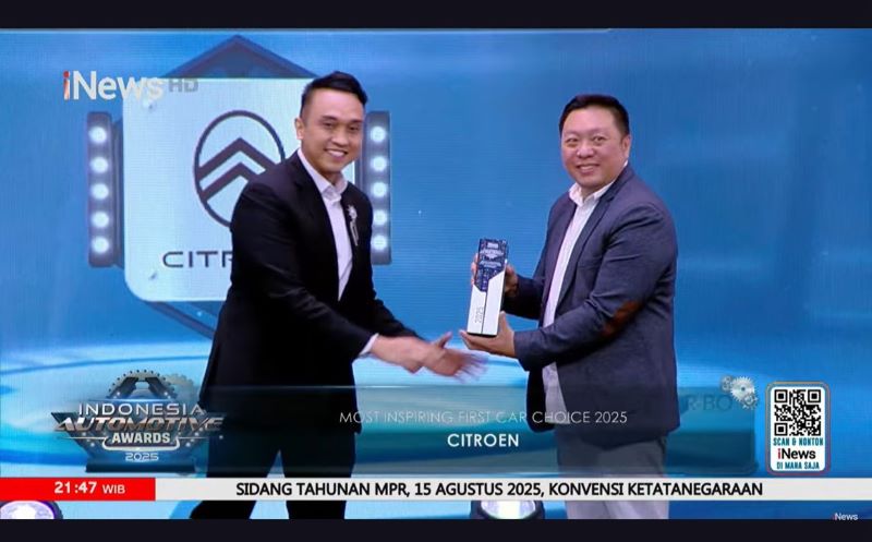 NMAA News – Citroën di Indonesia, kembali meraih penghargaan bergengsi sebagai “Most Inspiring First Car Choice” di ajang Indonesia Automotive Awards 2025 yang digelar iNews dan SindoNews TV pada 15 Agustus 2025.