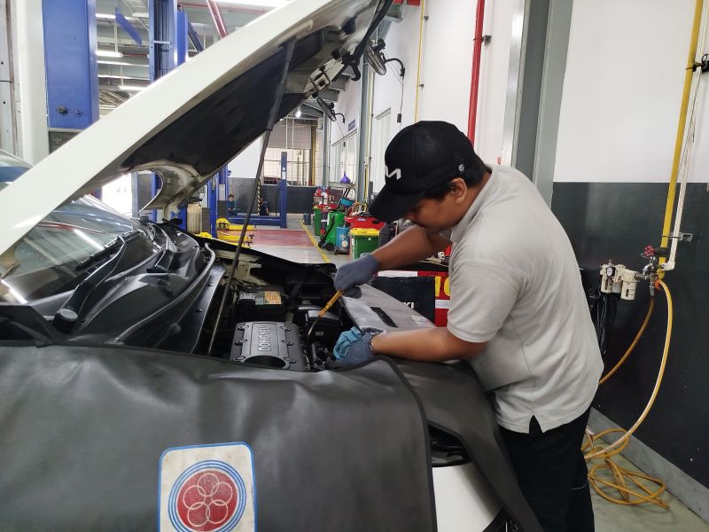 Seluruh pengerjaan servis kendaraan pun dilakukan oleh para tenaga ahli dengan suku cadang asli sehingga pelanggan dapat merasa tenang.