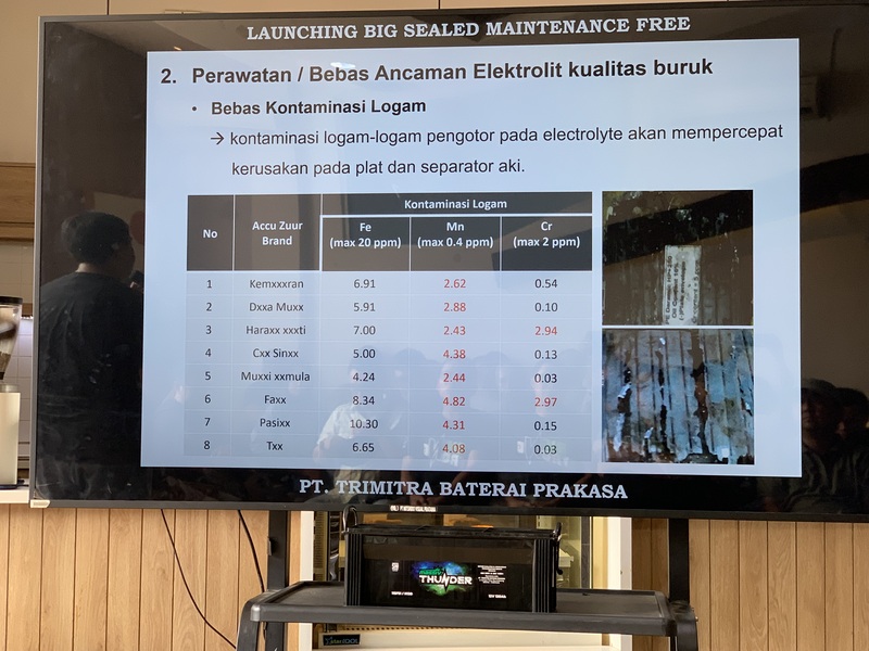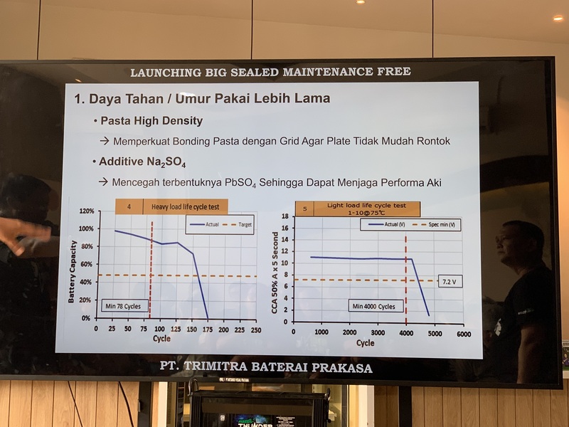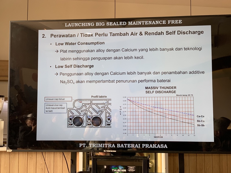 Dalam perkenalan aki baru yang berlabel Massiv Thunder Maintenance Free (MF) Big Type ini, Gde Oka Yunihartawan selaku Direktur Operasional PT. Trimitra Baterai Prakasa (TBP), menjelaskan rinci mengenai performa keunggulan yang dimiliki aki tersebut.