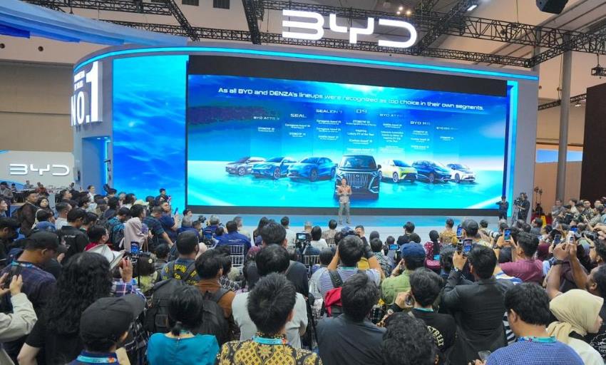NMAA News – Dalam area seluas 1,575 meter persegi di ajang pameran Gaikindo Jakarta Auto Week (GJAW) 2025, BYD menampilkan 10 unit dari 6 model EV yang mewakili kekuatan portofolionya di berbagai segmen.