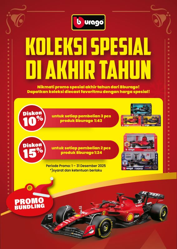 Untuk menyambut semangat mengoleksi di musim liburan, Bburago menawarkan promo akhir tahun yang berlaku eksklusif untuk pembelian offline di toko-toko ritel partisipan.