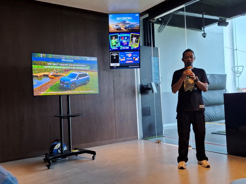 Acara dimulai pengenalan lebih jauh SUV Eksion. Dalam materinya, R. Danang Wiratmoko selaku Product Communication Manager Wuling Motors menjelaskan, Wuling Eksion hadir sebagai SUV 7-seater pertama di Indonesia dengan fleksibilitas sesuai kebutuhan mobilitas.