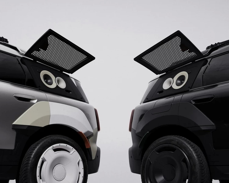 Perubahan paling signifikan terlihat di bagian eksterior. Panel bodi samping dimodifikasi untuk menampung speaker berukuran besar yang menghadap ke luar. Posisi ini memungkinkan suara tersebar lebih luas dibandingkan sistem audio konvensional di dalam kabin.