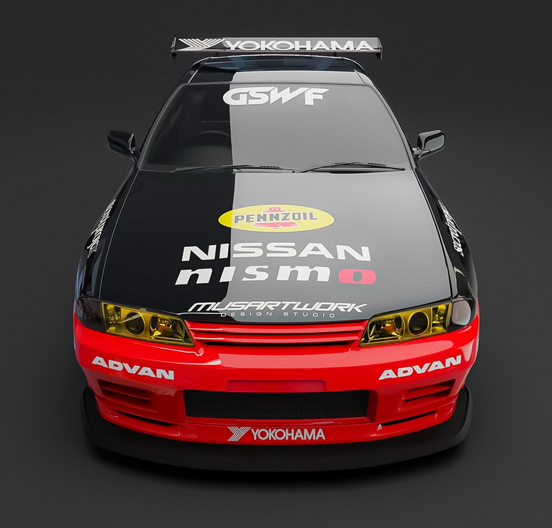 Lewat tangan Musartwork, livery ADVAN tersebut tidak hanya dihadirkan ulang, tapi juga diinterpretasikan dengan pendekatan modern. Garis desain dibuat lebih tegas, komposisi warna lebih agresif, dan penempatan elemen visual terasa menyatu dengan lekuk bodi GT-R. Hasilnya, mobil ini tampil jauh lebih hidup dan berkarakter dibanding versi sebelumnya.